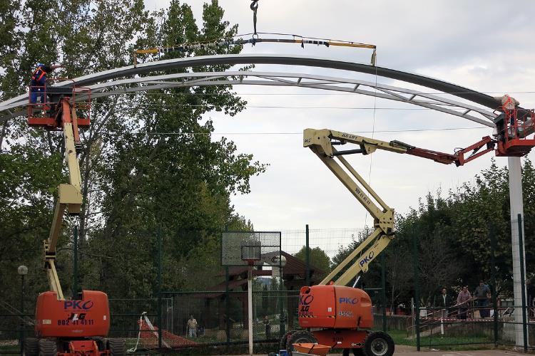 El pasado viernes se inició la colocación de la estructura que conformará la cubierta e iluminación de la pista polideportiva de La Barquera, cuya previsión es que esté finalizada a lo largo de la próxima semana.
