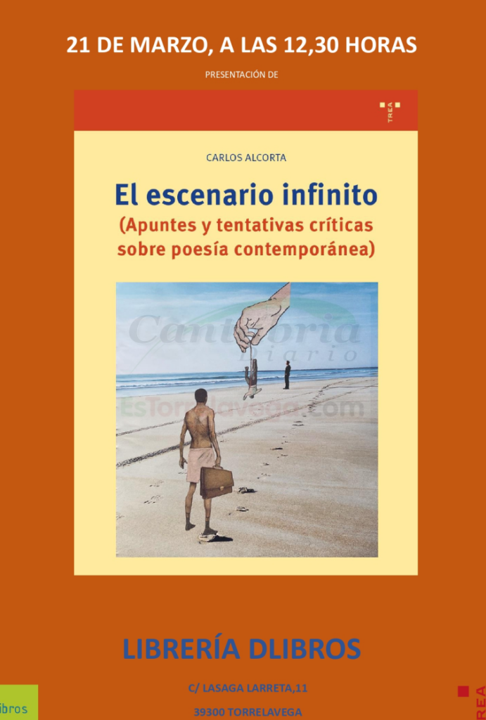 El poeta, gestor cultural y también locutor de radio con su programa «La hora de la cultura» que se emitió en nuestra radio CANTABRIA RADIO durante meses, Carlos Alcorta, presentará su nueva obra «El escenario infinito».