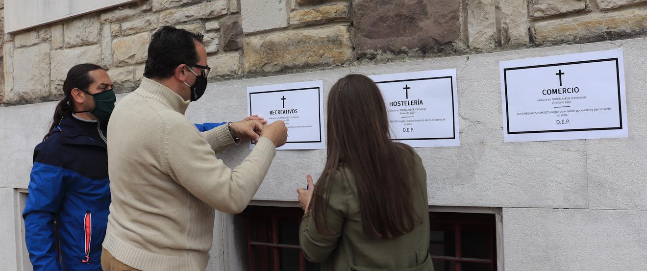 Más de trescientas personas se han sumado a la concentración frente al Ayuntamiento de Torrelavega, promovida desde la Asociación Empresarial de Hostelería 39300.