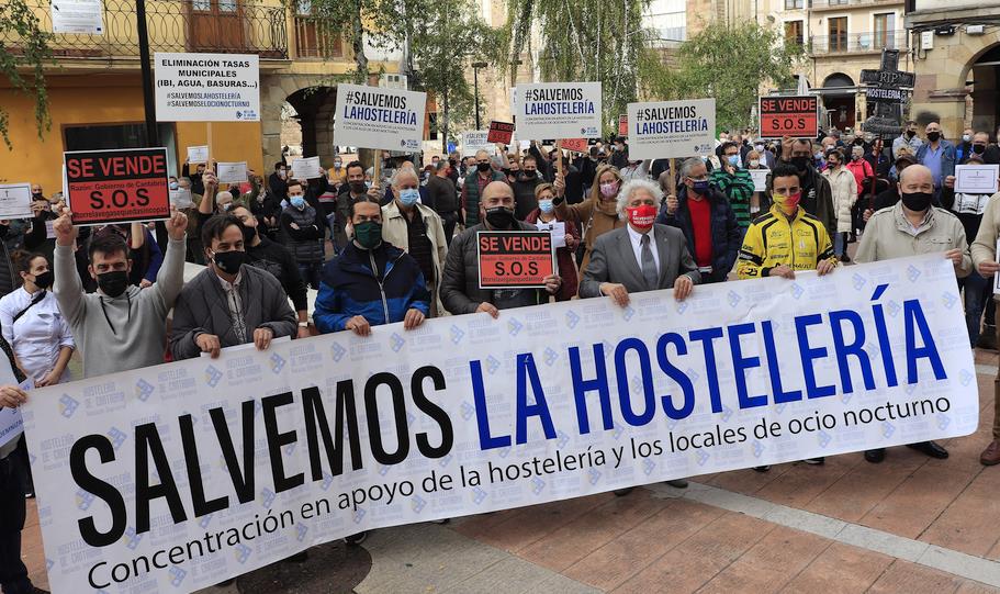 El colectivo de hostelería y ocio nocturno ha contado con el apoyo de la Asociación de Hostelería de Cantabria, COMVEGA y Asociación de Comerciantes de Nueva Ciudad, ante la ‘dramática’ aplicación de medidas restrictivas a la hostelería y la ‘falta de ayudas’, que va a conllevar ‘el cierre de multitud de establecimientos del sector con la consiguiente degradación para el tejido económico de la ciudad’