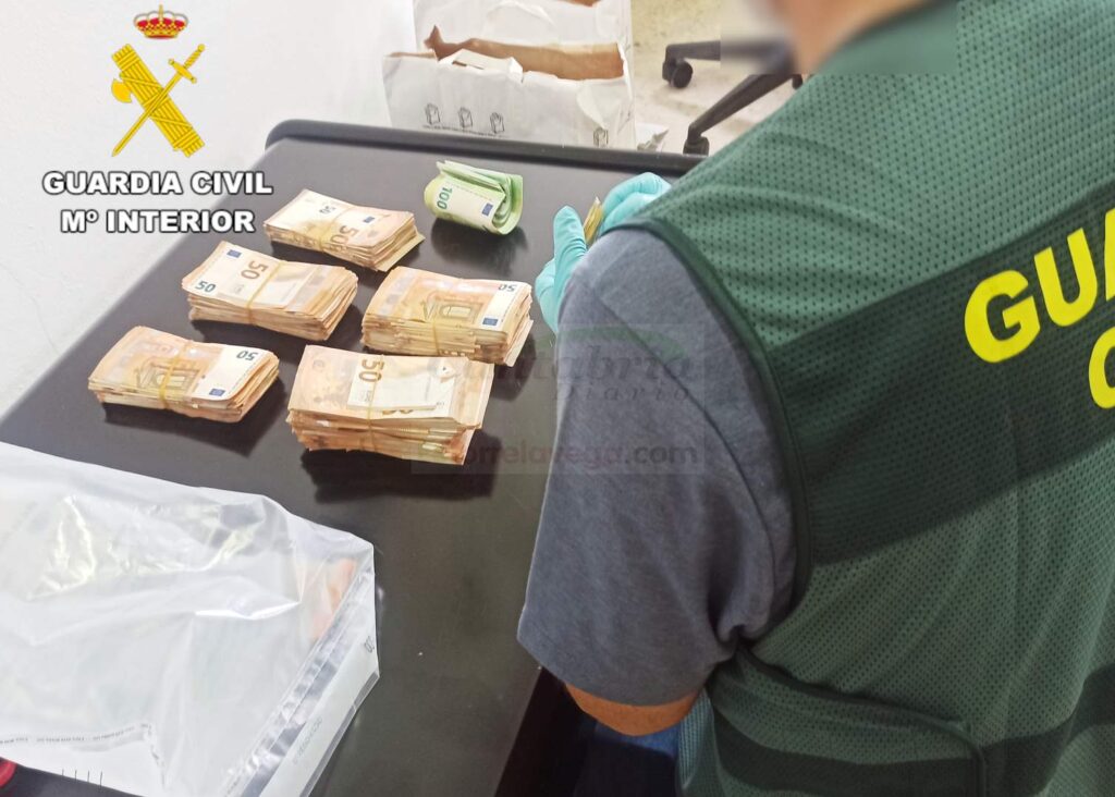Tras los registros efectuados en seis domicilios, locales anexos y empresas, se han intervenido cerca de 100.000 euros en metálico, cinco armas de fuego y varias armas blancas, munición, diferentes cantidades de cocaína, hachís y marihuana, parte de ellas preparadas para su venta al menudeo, útiles necesarios para su dosificación, unos 2,5 kilos de joyas de oro, y diversa documentación para su análisis.