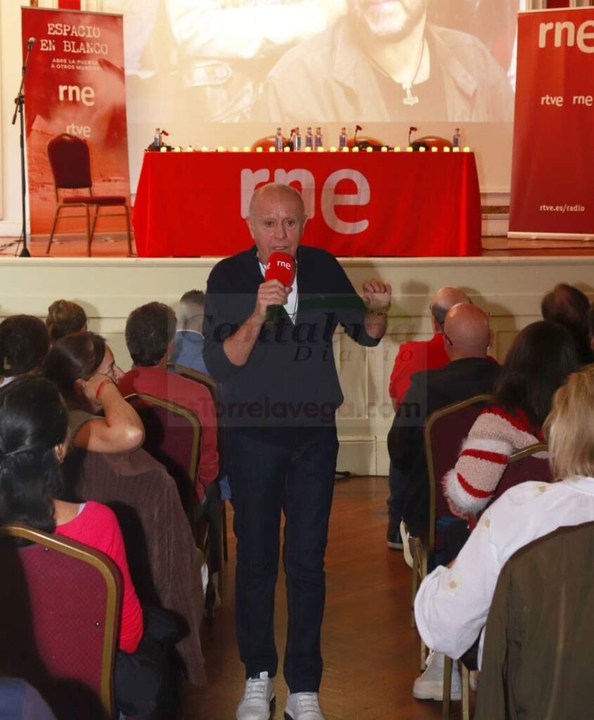 El salón de actos del Casino de Solvay, en Barreda, acogió el viernes a partir de las 18.30 horas la grabación del mítico programa de Radio Nacional de España (RNE) «Espacio en Blanco», dirigido por Miguel Blanco.