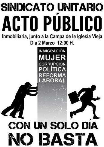 SU lanza esta convocatoria, bajo el lema «Con un solo día no basta», en protesta por la corrupción y la reforma laboral, entre otros temas.